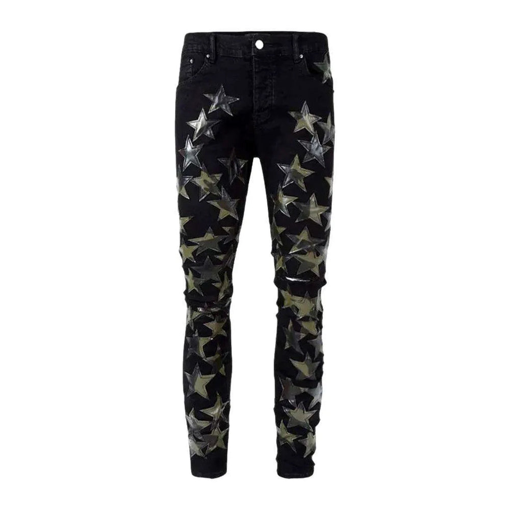 Black series stars embroidery jeans