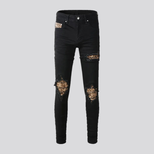Vintage patchwork skinny men's jeans