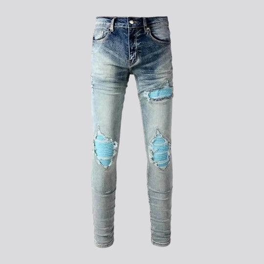 Vintage patchwork skinny men's jeans