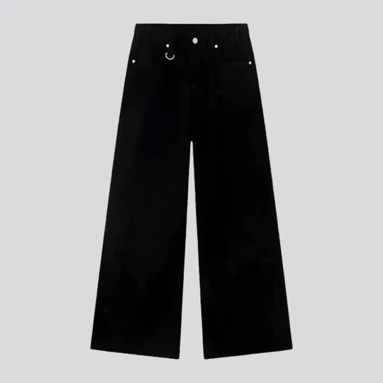 Mid rise stylish wide denim pants for ladies